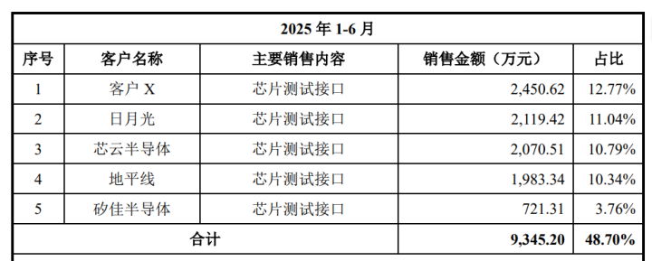 招股书显示,韬盛科技的客户集中度较高,主要集中在芯片设计、封装测试领域,虽然客户数量超过700家,但核心客户依赖度较高。公司重要客户包括客户X(全球领先的信息与通信技术解决方案供应商)、地平线、客户Z(领先的人工智能芯片设计企业)、长江存储等。前五大客户销售额占总营收比例从2023年的36.8%升至2025年上半年的48.7%。